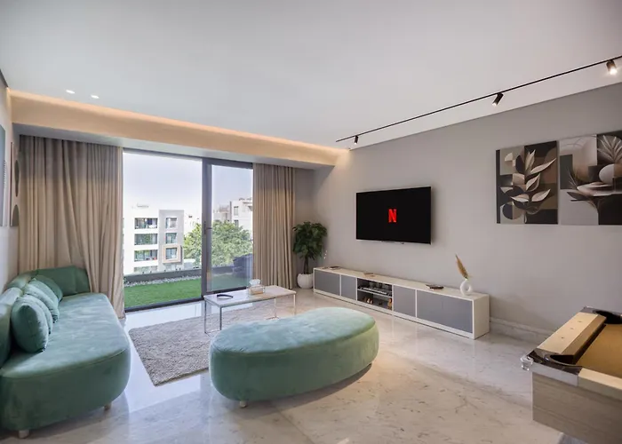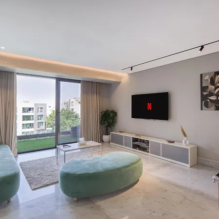 The 180 m² Elegant Garden & Pool View 2-Br Apt - Silverpalm offers an equipped kitchenette with all necessary appliances. Elegant Garden & Pool View 2-Br Apt - Silverpalm lies an 80-minute drive from El Giza train station. The apartment has a terrace.